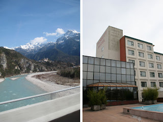 Seeing the beautiful scenes along the road was spectacular!!! Blue water and mountains of snow!!! Very nice!!! We stayed at a hotel out of Venice... Russot Hotel..